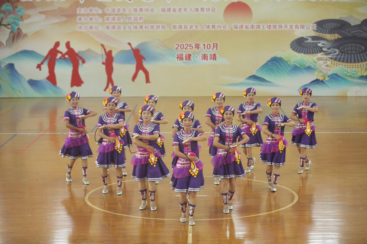 金秋十月,土楼生辉。在福建东南部的群山褶皱里,藏着一座将“世遗密码”与“生活美学”完美融合的小城——漳州南靖。这里72.7%的森林覆盖率织就绿色锦缎,15000多座土楼如珍珠散落其间,温泉与溪流滋养出烟火人间,非遗与文创碰撞出时代火花。由中国老年人体育协会、福建省老年人体育协会联合主办的2025年全国老年人健身球操交流活动在此举行。来自全国20个省(区、市)、计划单列市的35支代表队、580余名银发运动员齐聚于此,围绕规定套路与自编套路两大组别展开交流竞技。