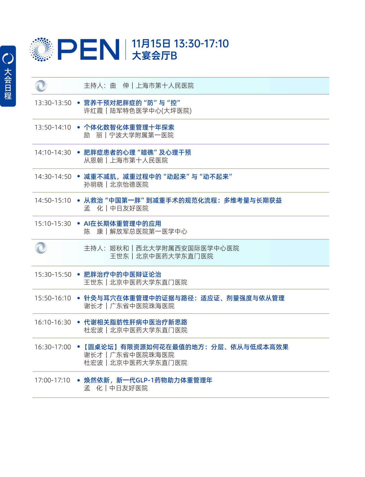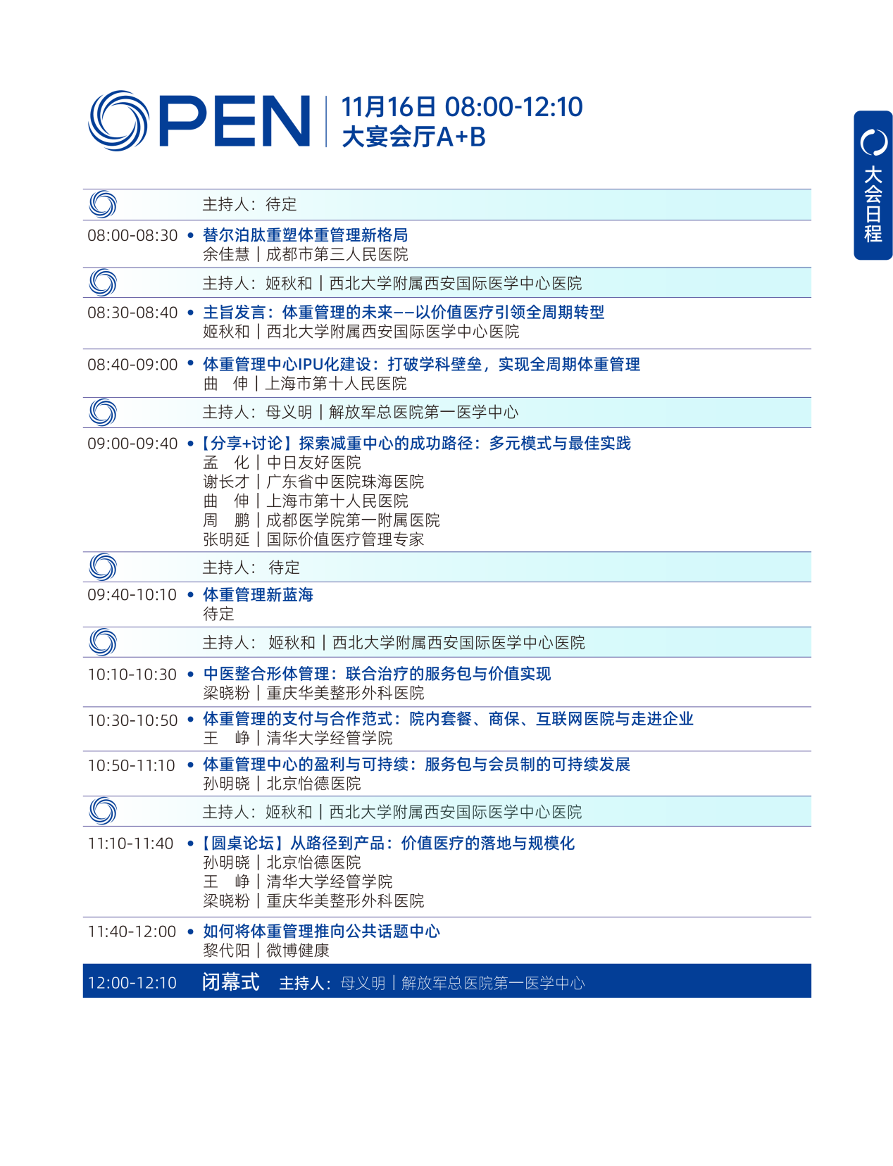 大会汇聚国内外肥胖防控领域顶尖学术与临床力量。权威专家将携全球前沿循证研究成果、本土化临床实践经验及深度行业发展洞察,为参会者打造兼具专业深度与实践价值的学术交流盛宴。大会日程(拟定)如下: