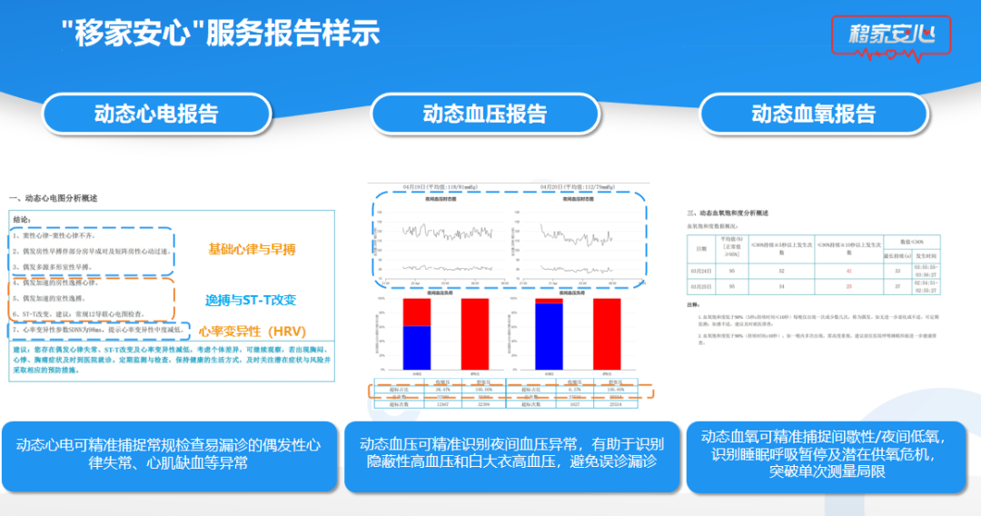 “移家安心”可提供动态心电、血压、血氧报告